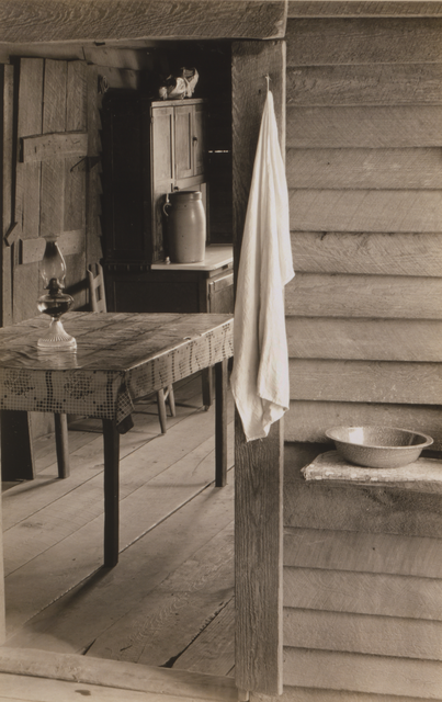 Cuisine rustique avec lampe à huile et serviette suspendue
