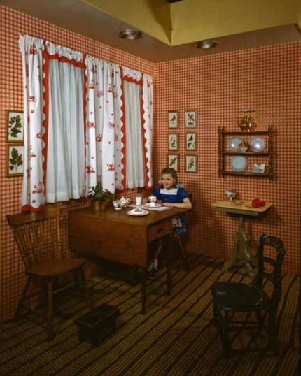 Petite fille prenant le thé dans une cuisine vintage