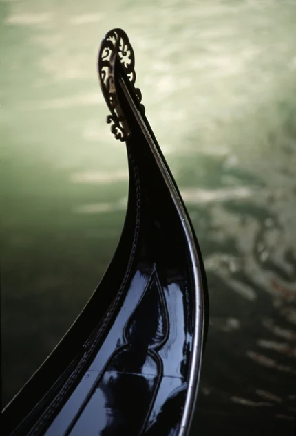 Reflets dorés sur une gondole à Venise