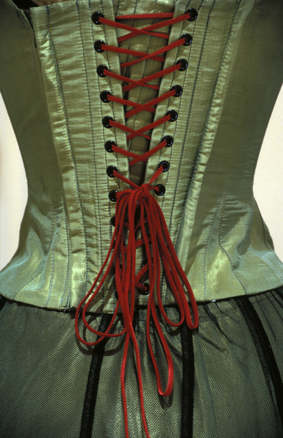 Corset vert à lacets rouges