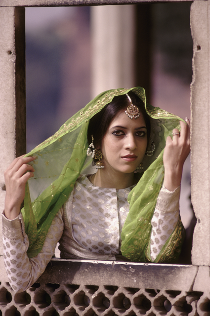 Femme en tenue traditionnelle avec voile vert