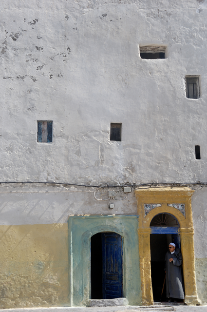 Vieille Bâtisse au Mur Blanc et Homme en Robe Traditionnelle