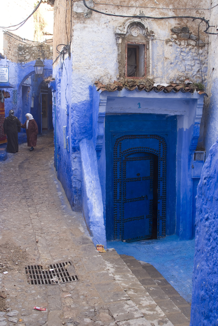 Ruelle pittoresque avec portes bleues dans la vieille ville