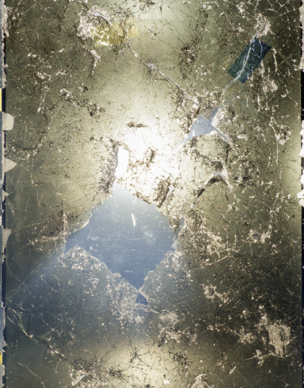 Fenêtre ancienne avec peinture écaillée et vue floue sur l’extérieur