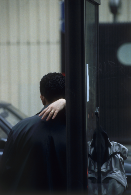 Couple en étreinte à un arrêt de bus
