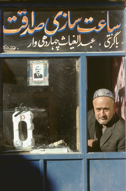 Atelier de réparation de radios avec homme à la fenêtre