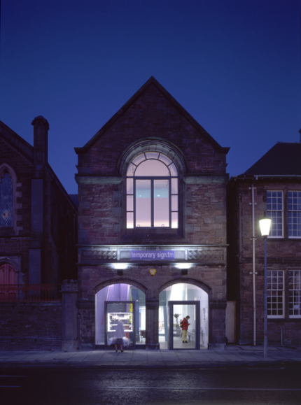 Façade de bâtiment en pierre illuminée la nuit