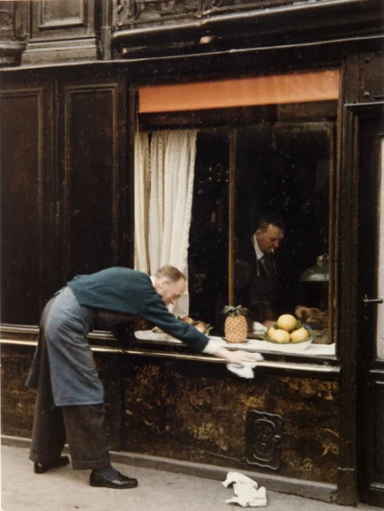 Employé nettoyant la vitrine d’un magasin