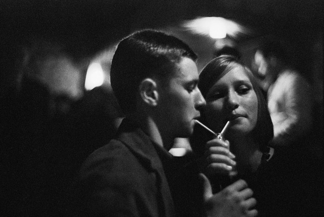 Photographie de deux personnes sur le Pont de Brooklyn sous un ciel gris