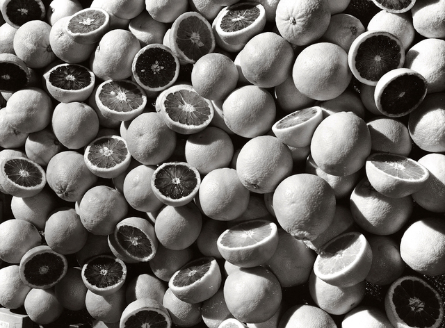 Agrumes fraîchement coupés en noir et blanc