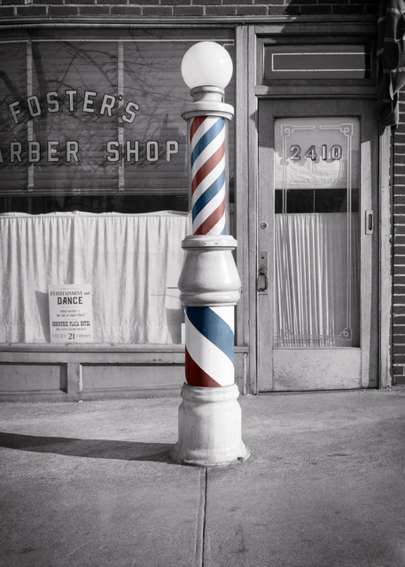 Ancienne enseigne de barbier devant une boutique