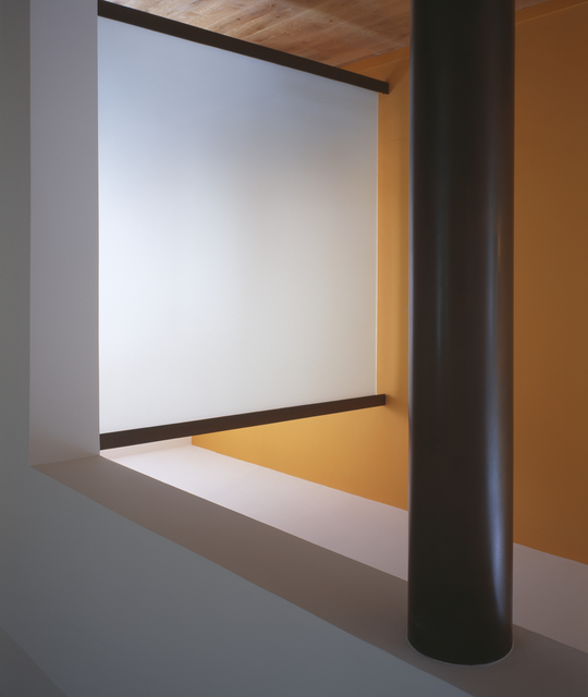 Fenêtre enveloppée d’un film plastique sur un mur en bois usé.