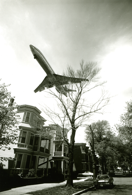 Avion survolant un quartier résidentiel