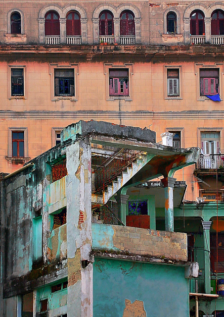 Bâtiment Ancien en Décrépitude avec Fenêtres Colorées