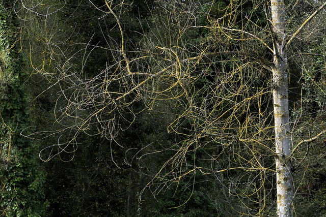 Arbre solitaire près d’un ruisseau en noir et blanc