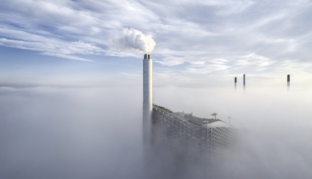 Cheminées industrielles émergeant de la brume