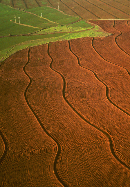 Vue aérienne d’une plage avec marées et traces de véhicule