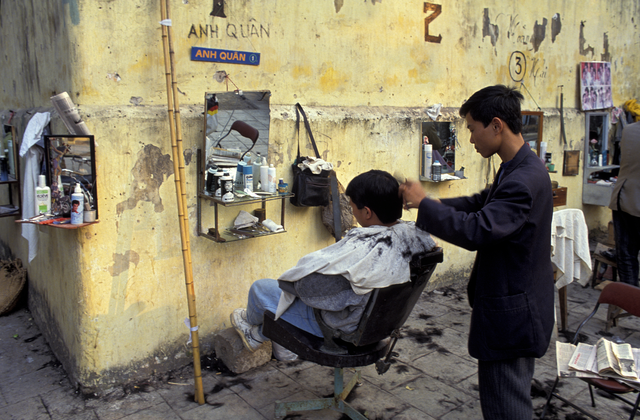 Coiffeur de rue en Asie