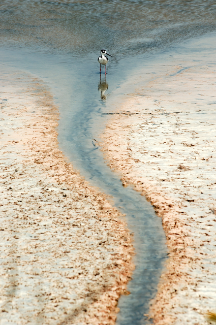 Oiseau Seul près d’un Ruisseau sur une Plage