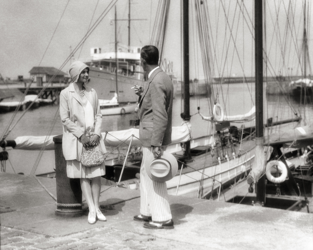 Couple discutant sur un quai devant des bateaux