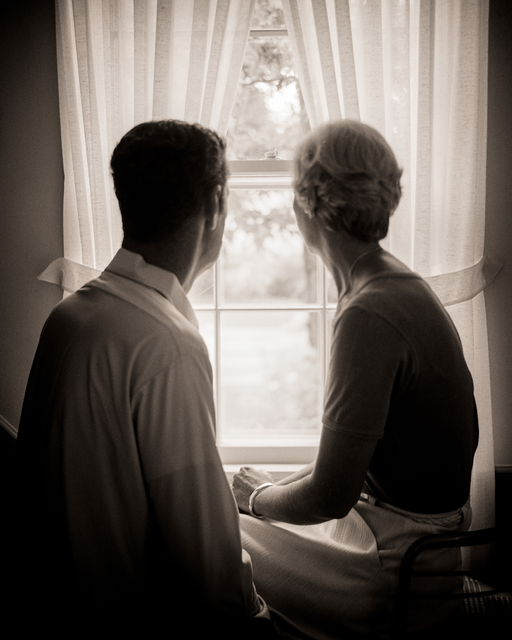 Couple regardant par la fenêtre