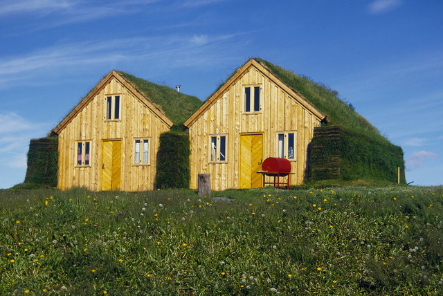 Deux maisons en bois avec toits végétalisés