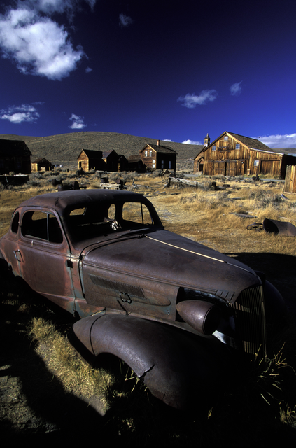 Voiture abandonnée dans un village fantôme historique