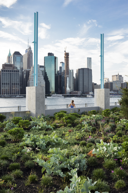Vue sur la Skyline de Manhattan depuis un Jardin Urbain