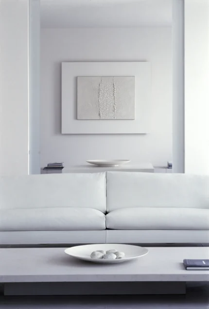 Salon moderne minimaliste avec des accents blancs