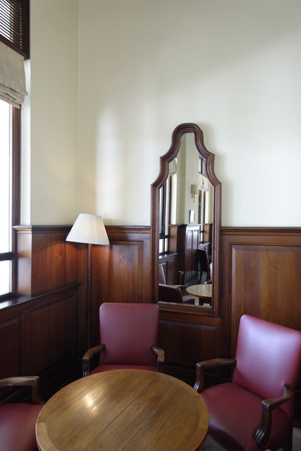 Salle d’attente élégante avec fauteuils rouges et miroir