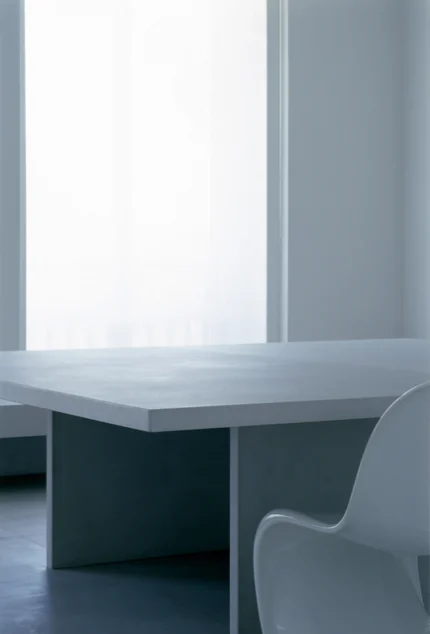 Table minimaliste avec chaise design près d’une fenêtre