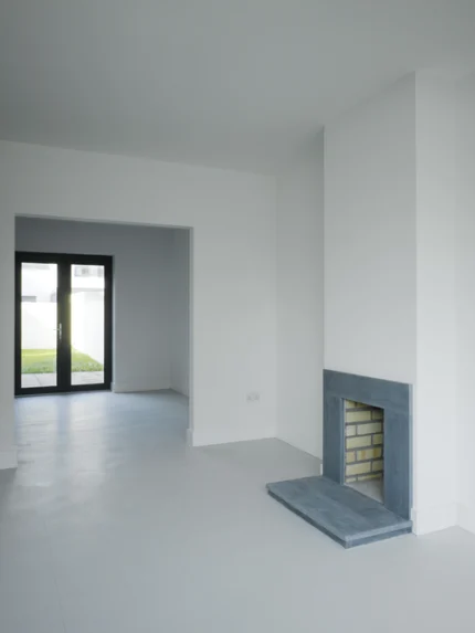 Salon Vide avec Cheminée et Grandes Fenêtres