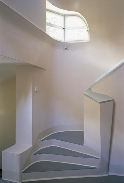 Escalier intérieur moderne avec fenêtre cintrée