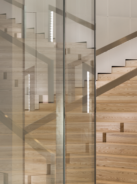 Escalier moderne en bois avec parois vitrées