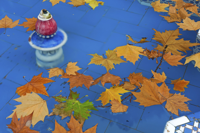 Feuilles d’automne flottant dans une piscine