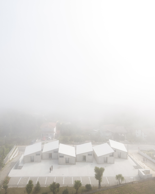 Maisons modernes dans le brouillard