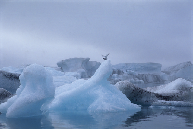 Oiseau sur un iceberg dans l’Arctique