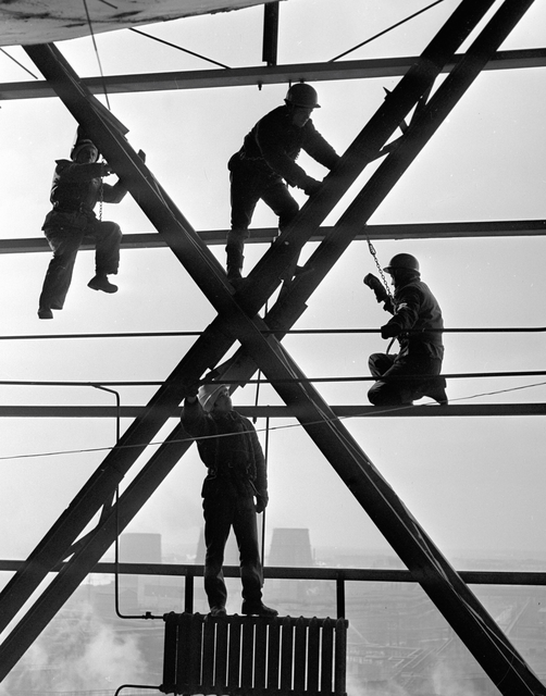 Ouvriers sur une structure métallique en hauteur