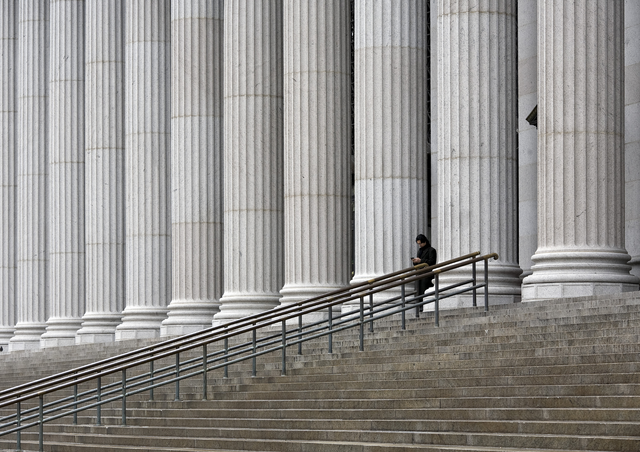 Personne devant des colonnes majestueuses
