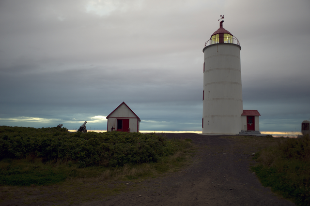 Phare au coucher du soleil avec petite maison