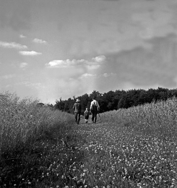 Promenade dans un champ au crépuscule.