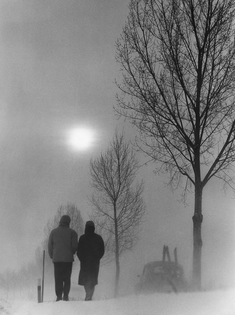 Promenade hivernale en duo sous un ciel brumeux
