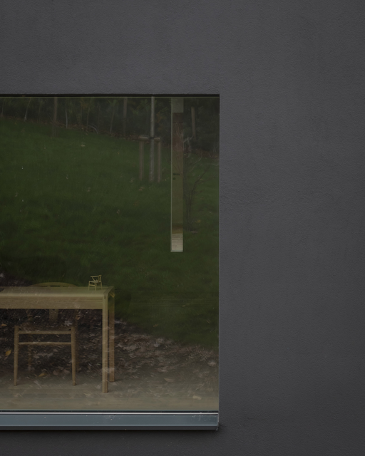 Reflet d’une table et chaise à travers une fenêtre