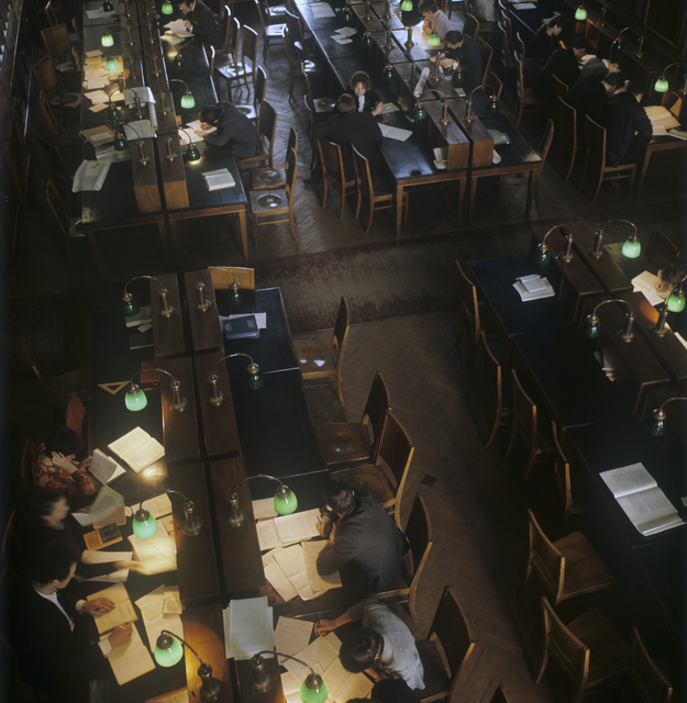 Salle de lecture occupée d’une bibliothèque