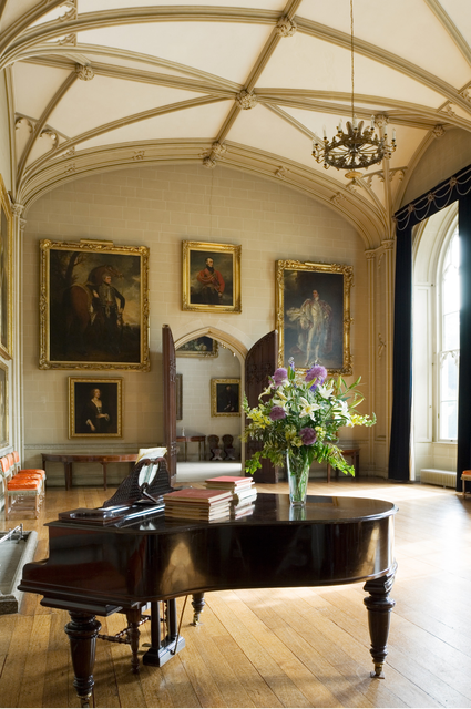Salle élégante avec piano et tableaux aristocratiques