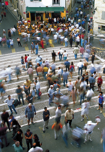 Scène animée devant une brasserie en Europe