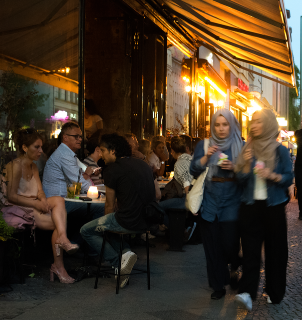 Scène de café animé en soirée