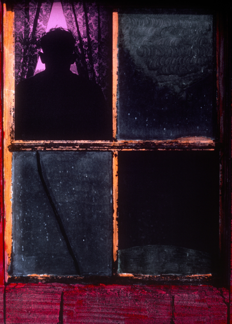 Silhouette derrière une fenêtre sombre