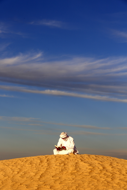 Homme lisant un livre sacré dans l’entrée d’un bâtiment