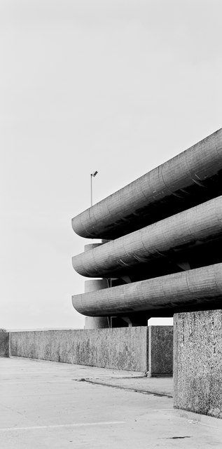 Parking brutaliste en béton noir et blanc